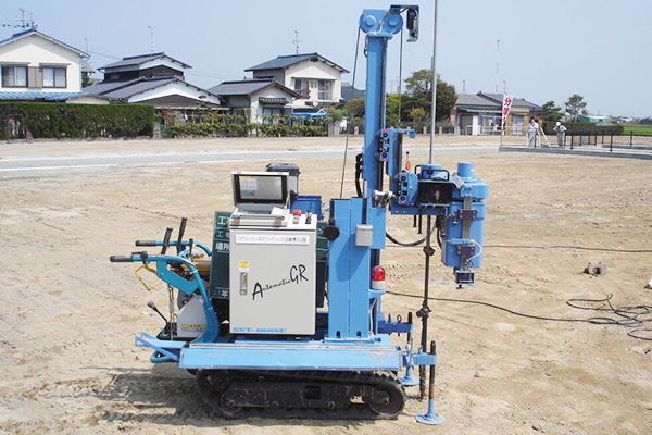 基礎工事前に地盤がゆるいかどうかの確認をします。