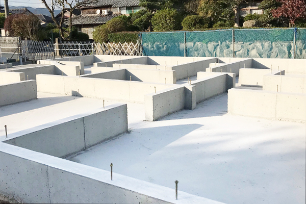 敷地図・配置図通りに位置や高さ、水平などが決定され、地盤の掘削が開始されます。 その後、砕石・転圧をし、捨てコンと防湿シートが敷かれます。 さらに配筋・コンクリート打ち込み・型枠工事を行い、必要な養生期間を経て基礎工事は完成です。